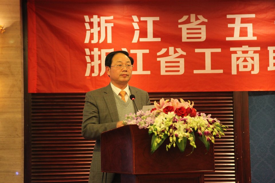 浙江省工商联党委副书记黄正强给新任会长张月龙颁发证书